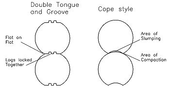 Moose Log and Timber Frame HomesThe International Code Council's “Standard on the design and construction of log structures” defines settling as the combinations of slumping, compaction, and radial shrinkage. Slumping and compaction are typically only an issue with cope style logs. In most instances cope style logs are purposely cut so that the corners of the cope are the only portions of the top log in contact with the bottom log, leaving a small air gap between the logs in the middle of the cope. As the log dries the cope opens up and the top log sits down on top of the bottom log. This loss in height is called slumping. If the corner portions of the cope are narrow and there is a heavy load on the log walls then the wood fibers can be crushed and this is called compaction. Slumping and compaction are not a concern with our flat on flat profile logs.